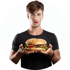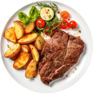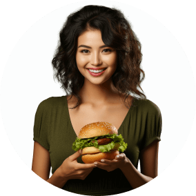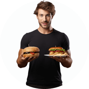 Indulge in a sesame bun burger, crispy French fries, and a tasty milkshake